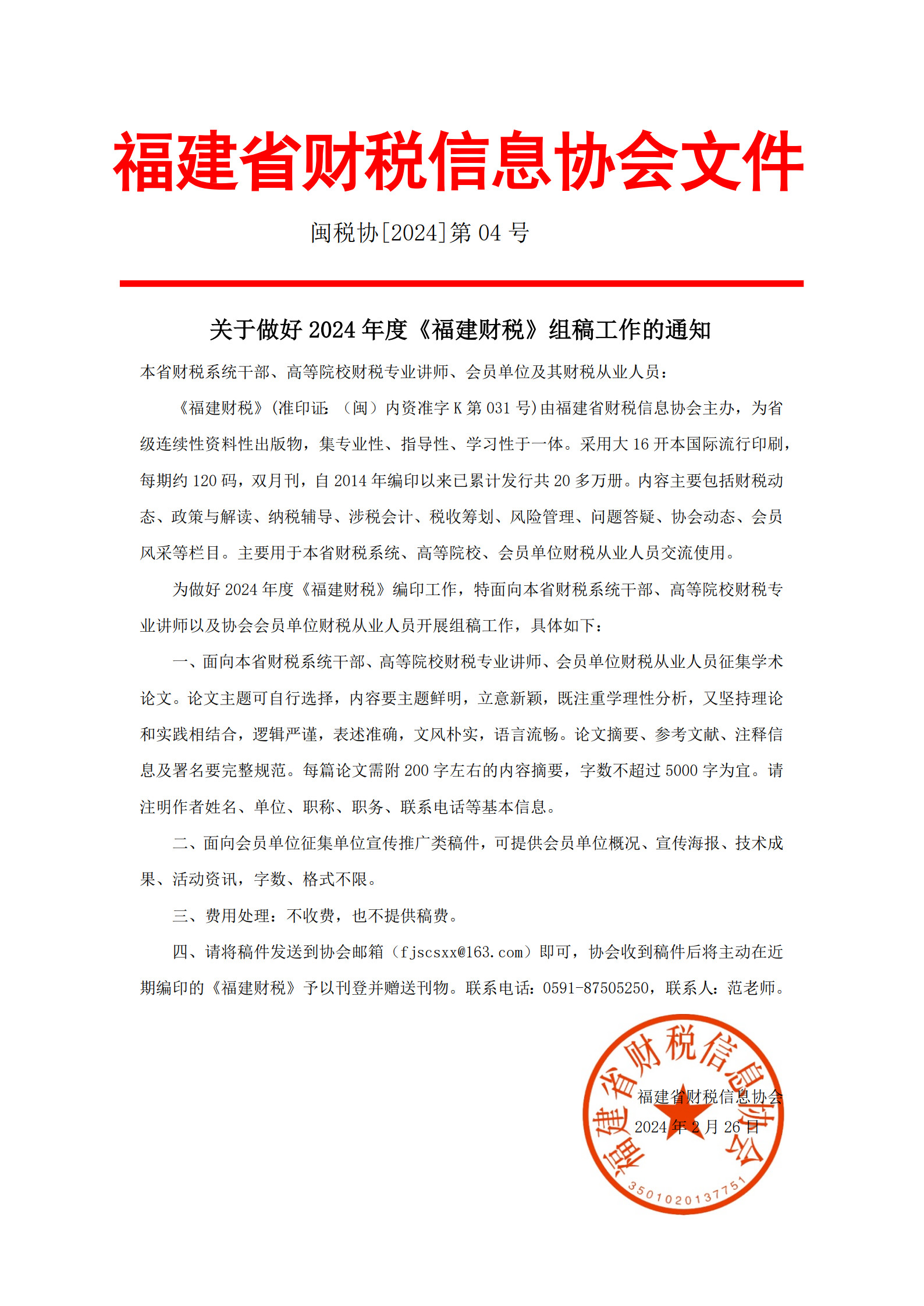 關(guān)于做好2024年度《福建財(cái)稅》組稿工作的通知