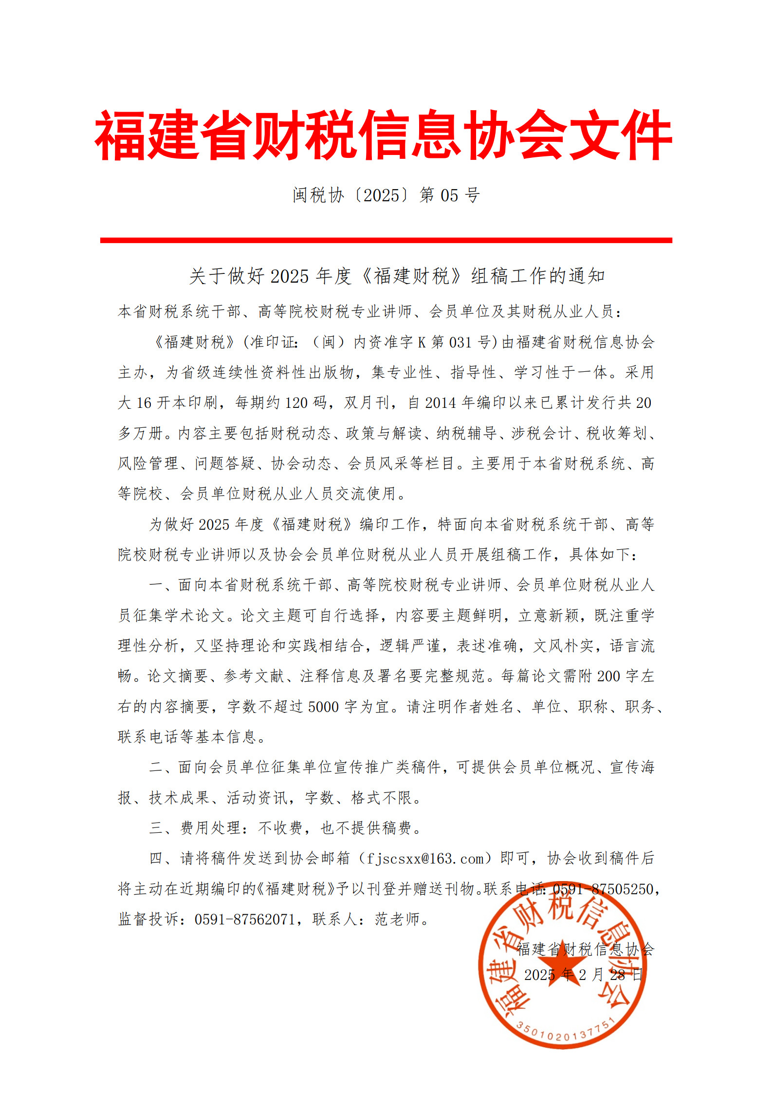 關(guān)于做好2025年《福建財(cái)稅》組稿工作的通知