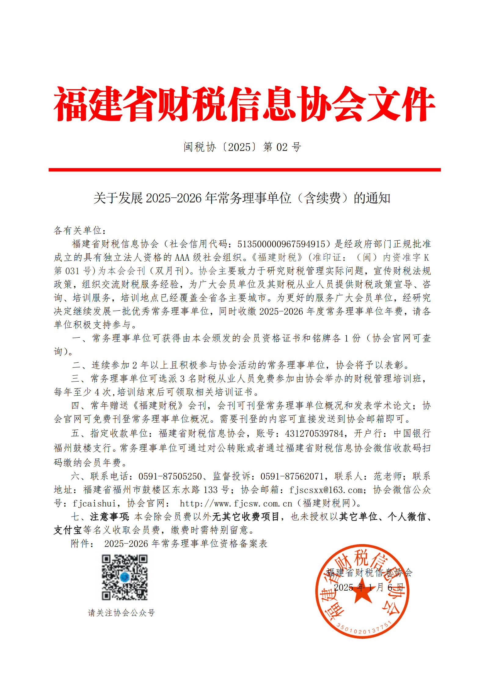 福建省財(cái)稅信息協(xié)會(huì)2025年度繳費(fèi)提醒