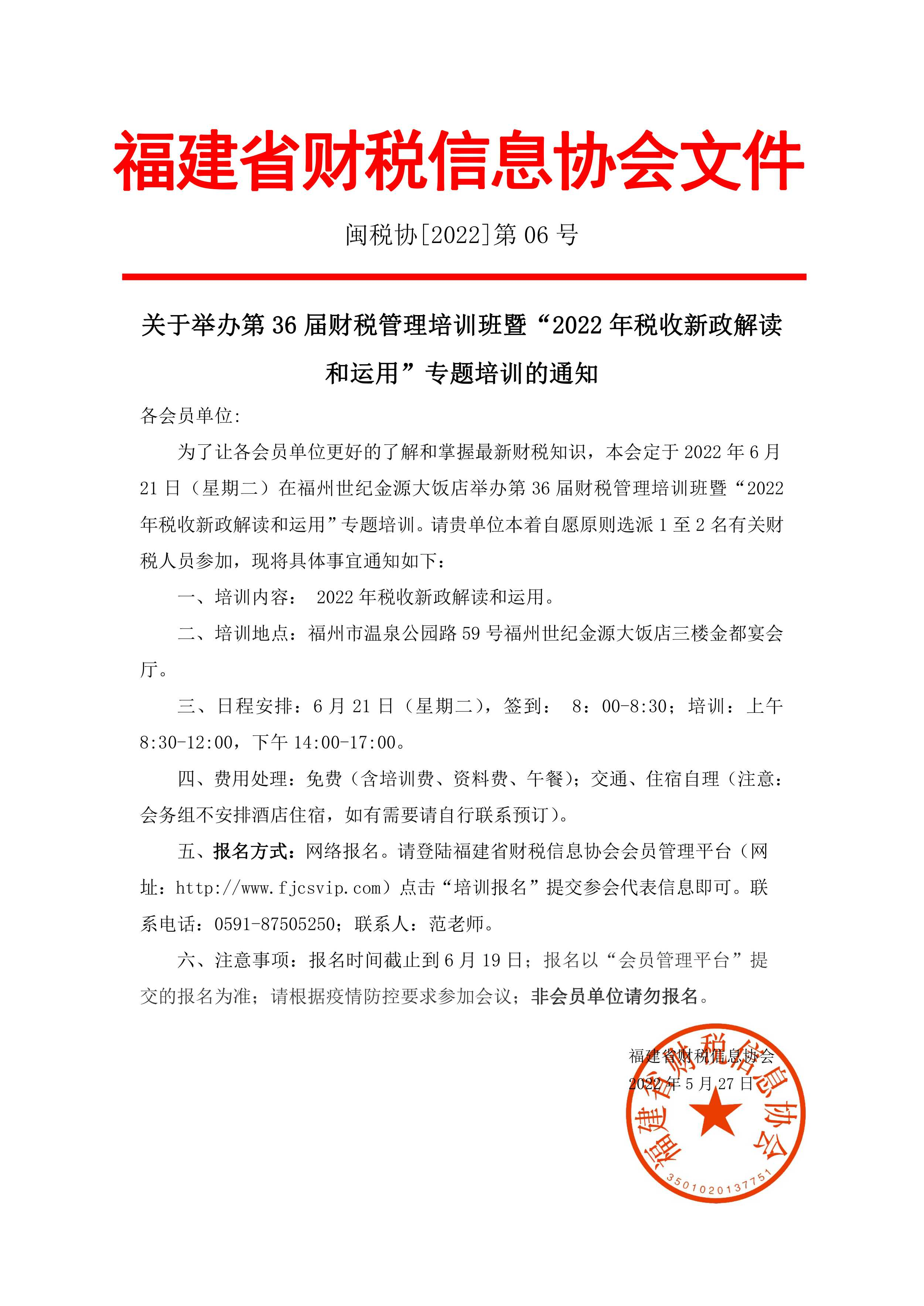關(guān)于舉辦第36屆財稅管理培訓班暨“2022年稅收新政解讀和運用”專題培訓的通知