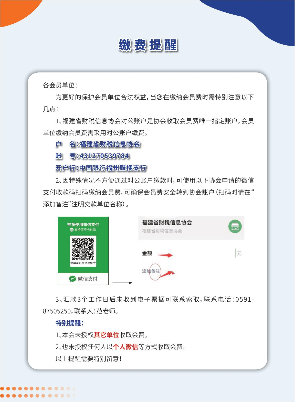 福建省財稅信息協(xié)會繳費提醒