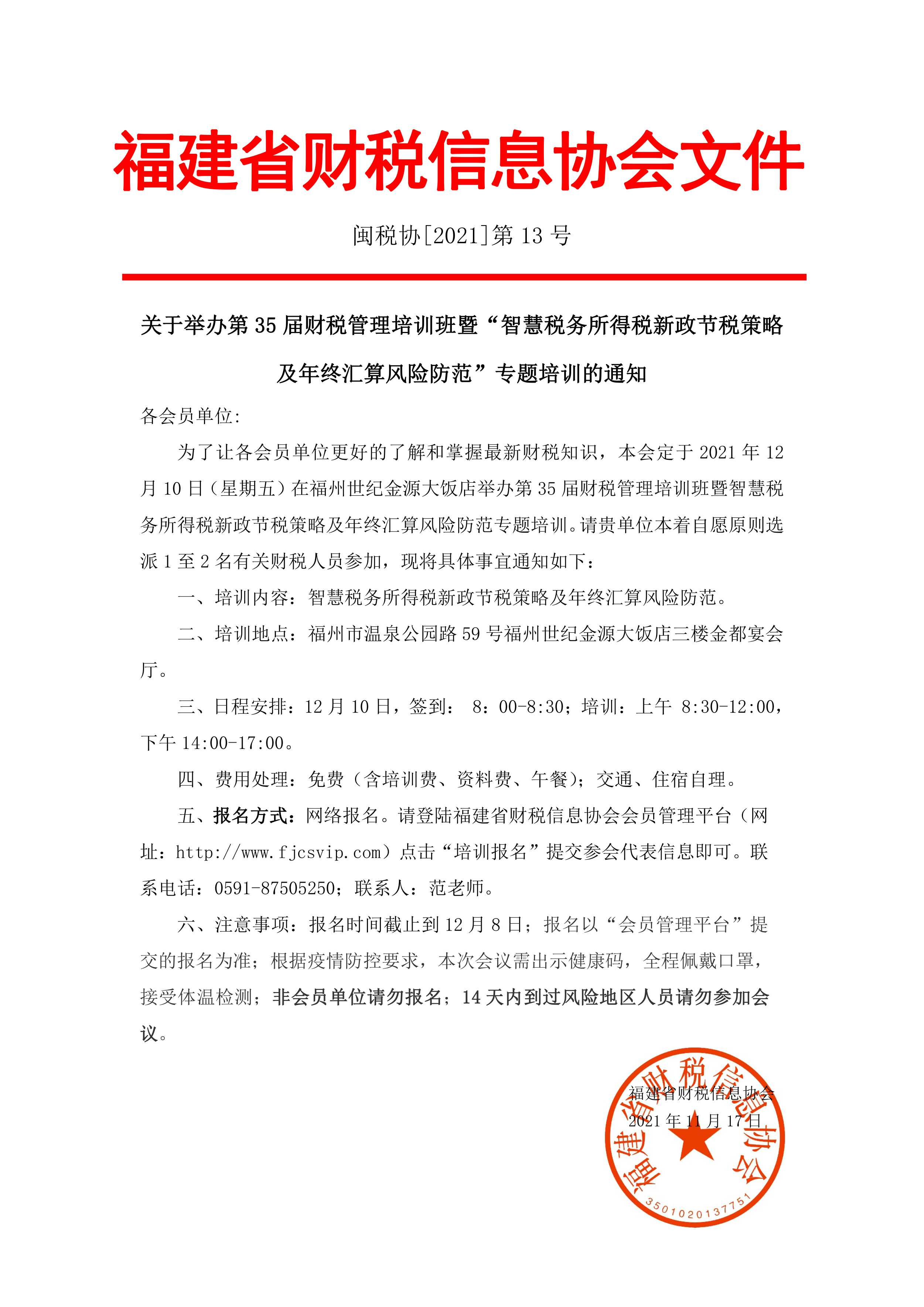 關(guān)于舉辦第35屆財(cái)稅管理培訓(xùn)班暨“智慧稅務(wù)所得稅新政節(jié)稅策略及年終匯算風(fēng)險(xiǎn)防范”專題培訓(xùn)的通知